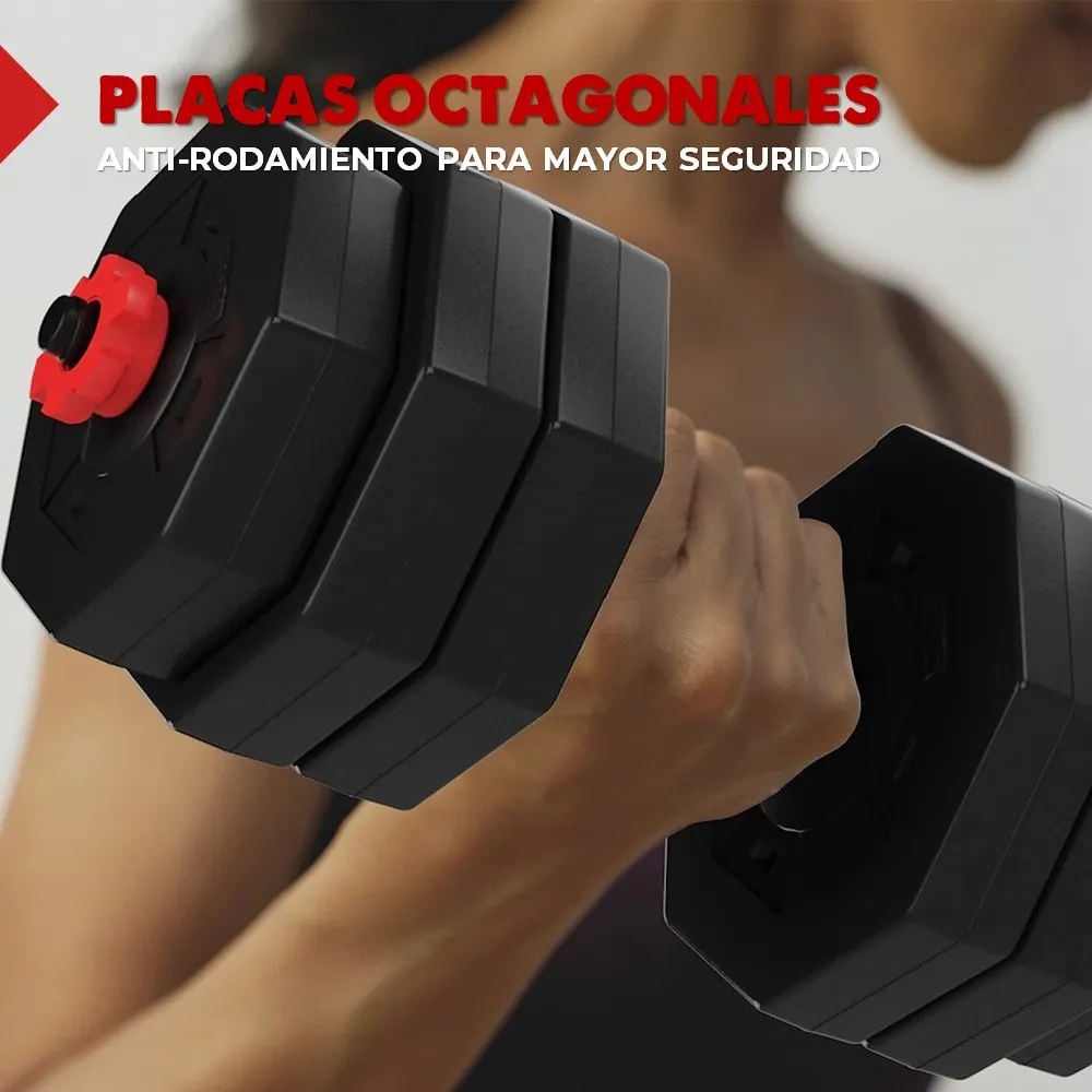 ¡Desafía tu fuerza con tu Set de Mancuernas Multifuncional de 19,9 kg!