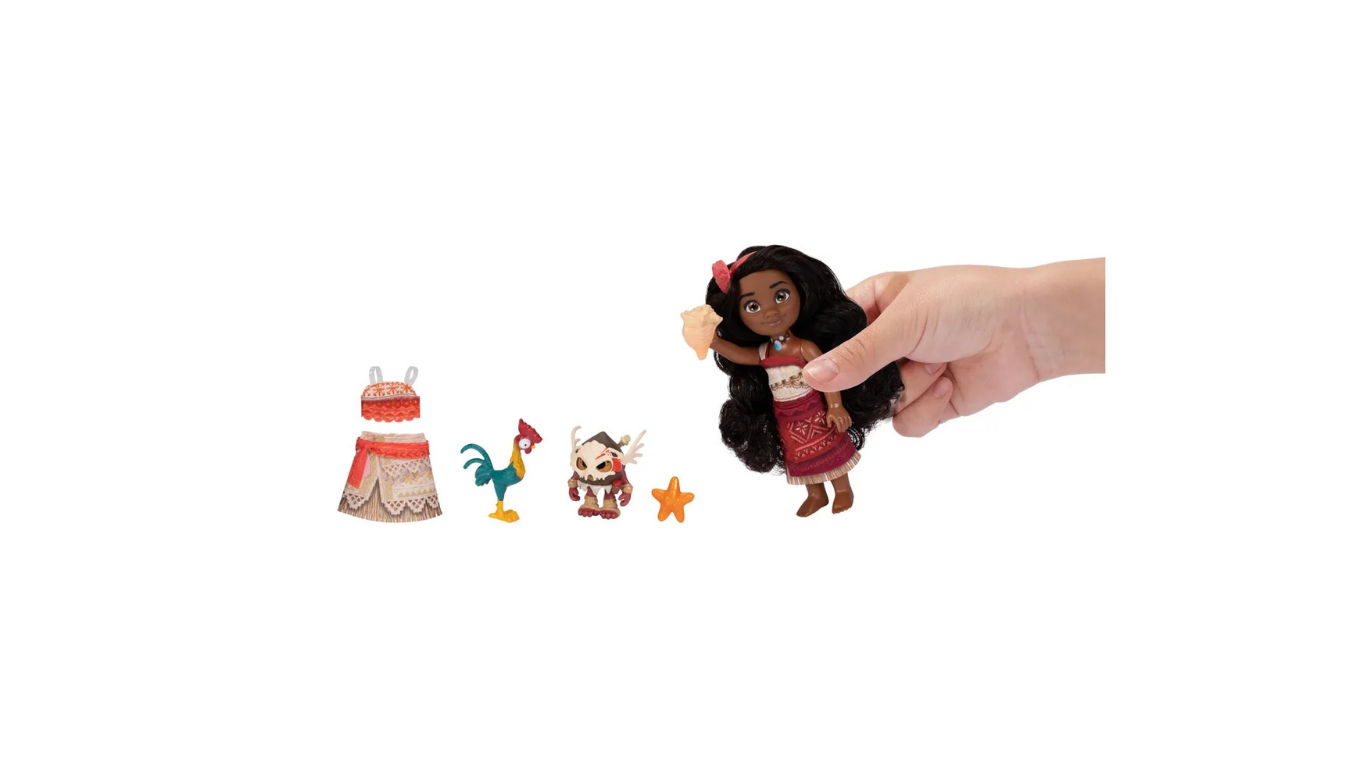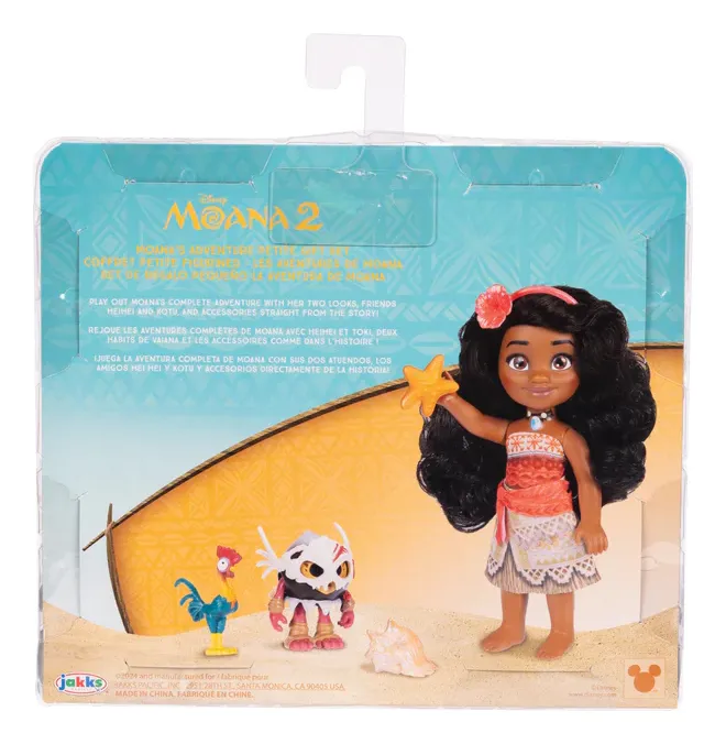 Amigos y Accesorios Únicos: Incluye a Hei Hei, una estrellita de mar, un caracol de mar y una figura de guerrero Kakamora, los singulares y traviesos cocos guerreros de las islas.